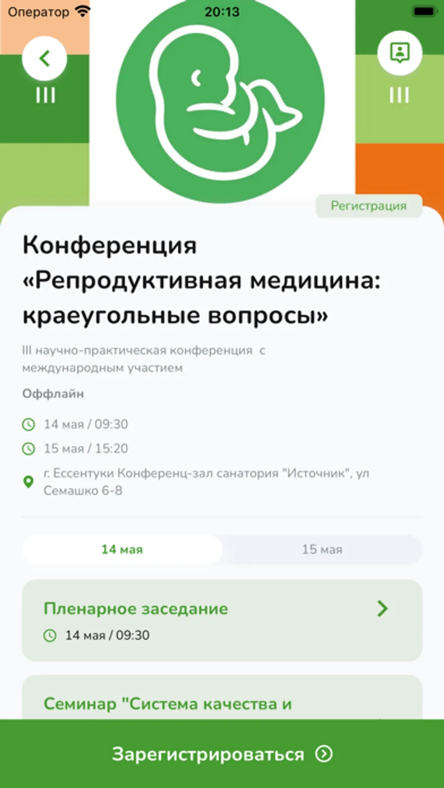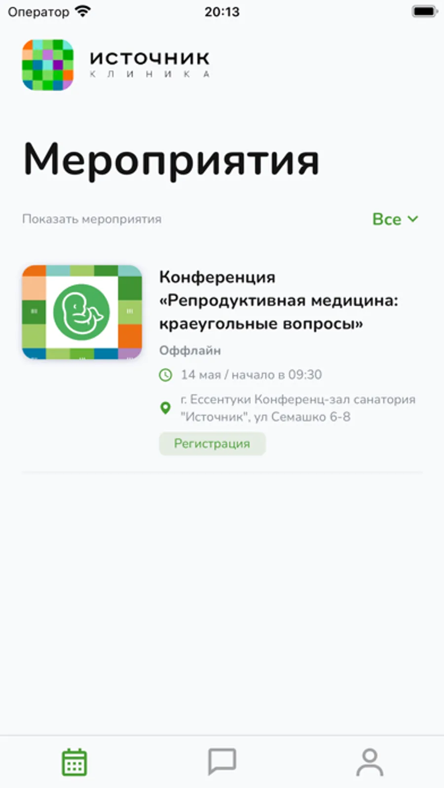 Приложение для просмотра и регистрации на мероприятия клиники "Источник"