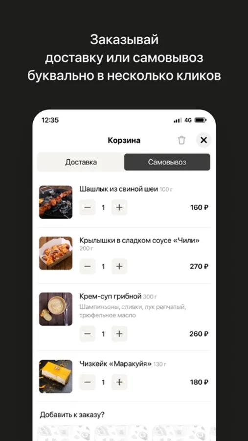 — Быстрый заказ с мгновенным подтверждением через приложение.