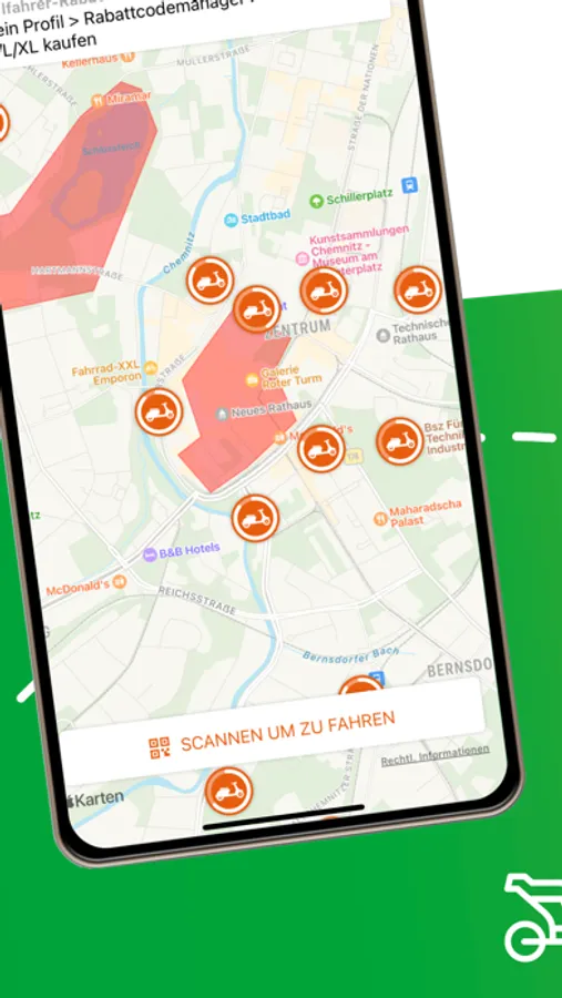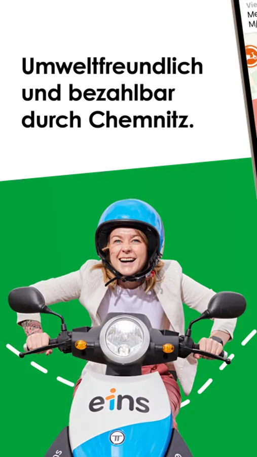 teil dir eins: Dein E-Roller-Sharing in ganz Chemnitz. Nutze die "teil dir eins"-App, um dir einen E-Roller auszuleihen und quer durch die Stadt zu fahren.