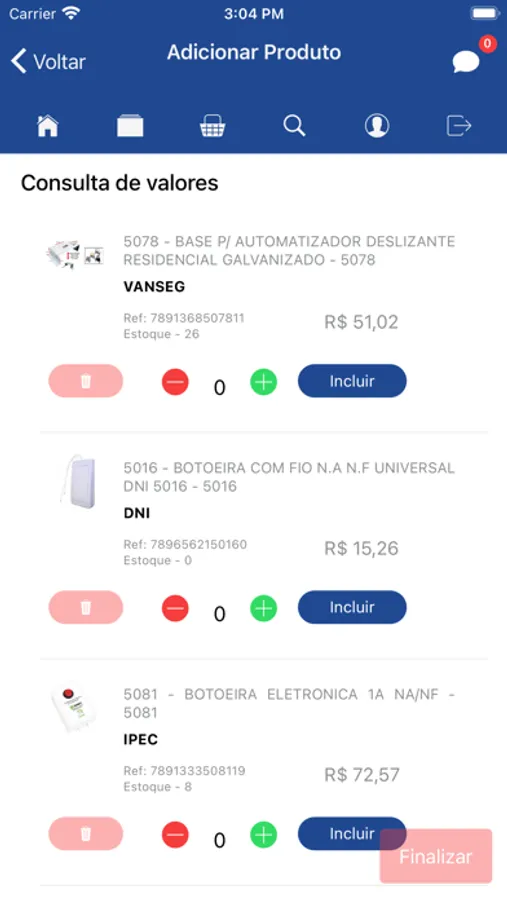 Aplicativo para geração de orçamentos de produtos da DCOL Distribuidora.