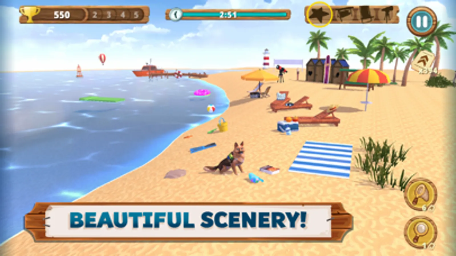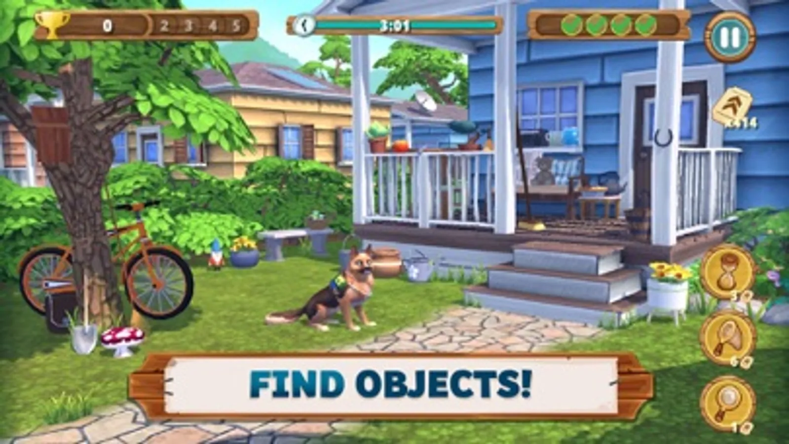 You also need to take care of Buster, the rescue dog! Make sure that he always has enough energy. He needs water and food to stay healthy. Teach the dog basic obedience like “sit” and “stay”. Don’t forget to give Buster a treat as a reward for doing tricks! It’s so much fun to watch him at work! Explore the beautiful scenery to find the hidden objects.