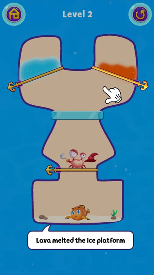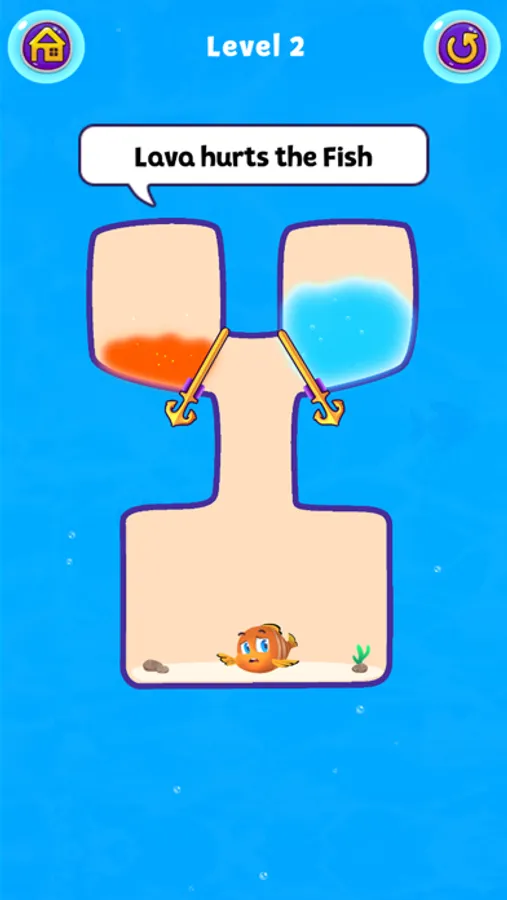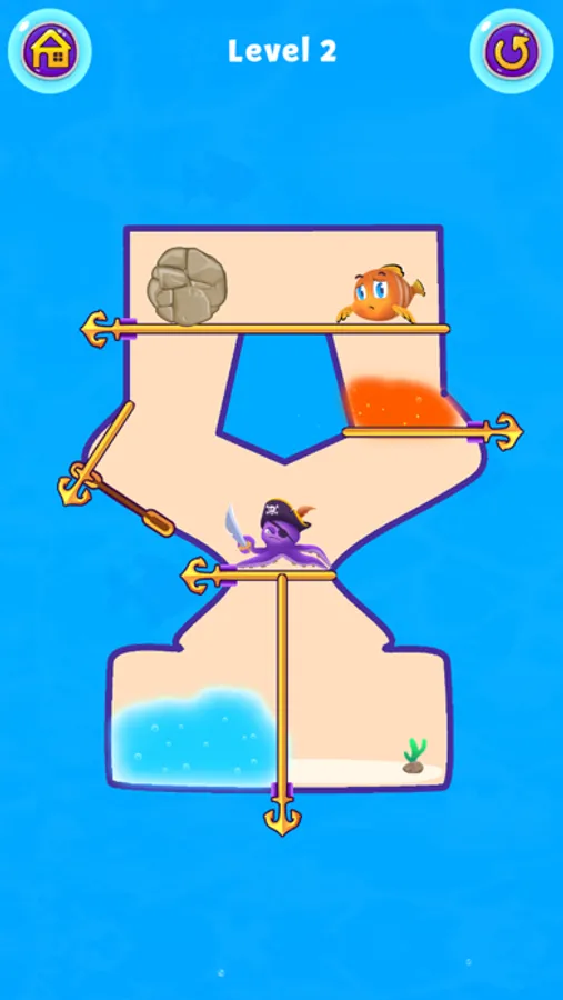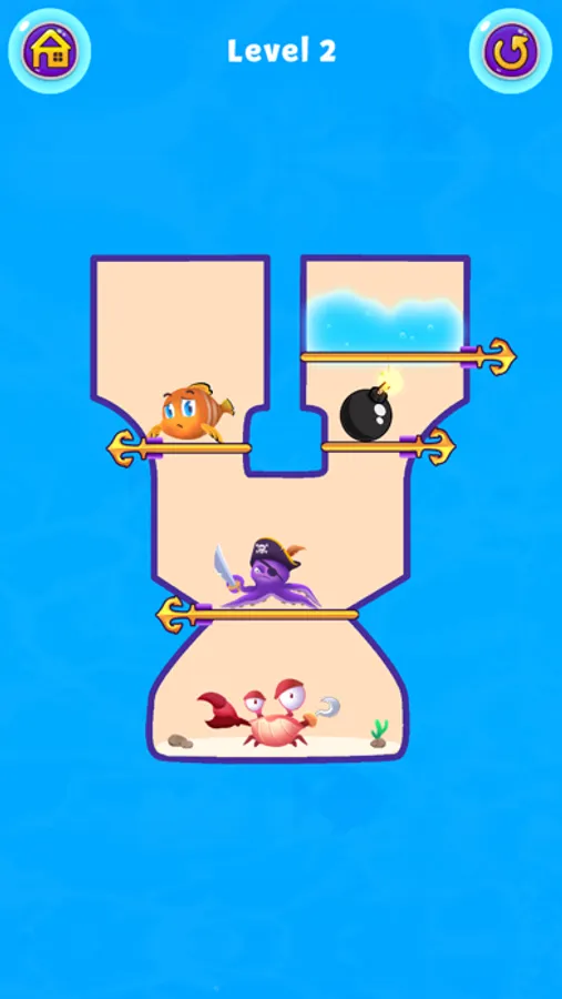You will come across various obstacles and sea creatures like acid bombs, spikes, Crabs, Octopus, your main task will be to help the fish to find a way survive from these elements. The levels may seem easy but you should aim to gain all three stars to reach the next level which is more challenging and intuitive.