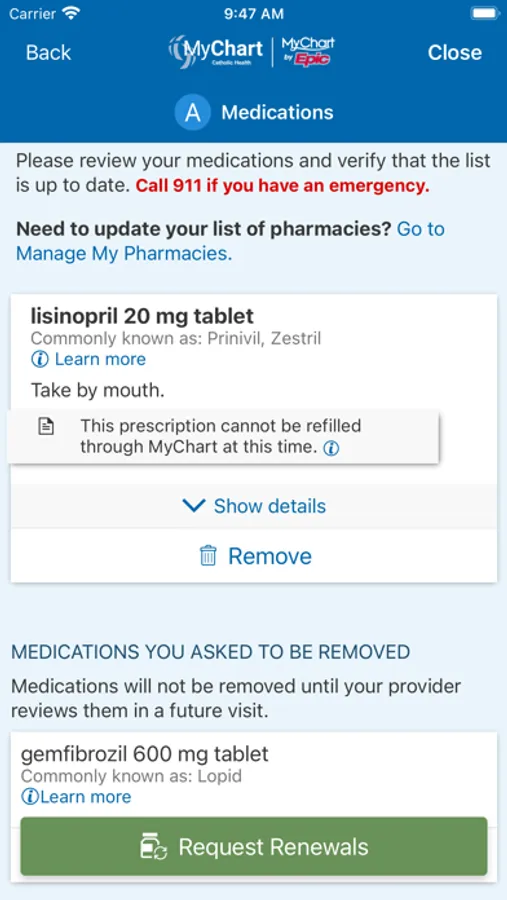 The MyChart app also enables you to check in to your appointment directly from your mobile device, and reduces the need to fill out paper forms each time you go to a new Catholic Health office. All your records will be in one place on MyChart.