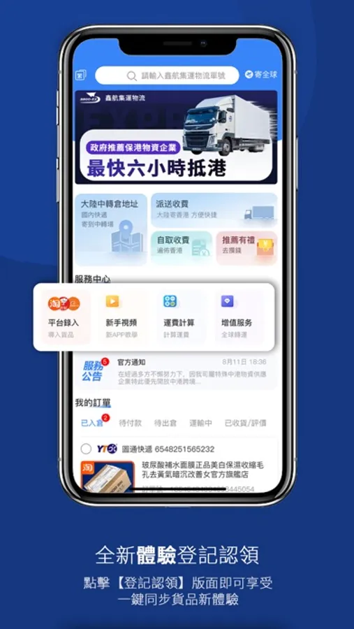 鑫航集運提供陸運全綫開通當日到港集運物流,也就是貨物從淘寶等國内電商平臺購物到達集運倉客戶申請集運,壹天到達香港,最快兩天即可收件。