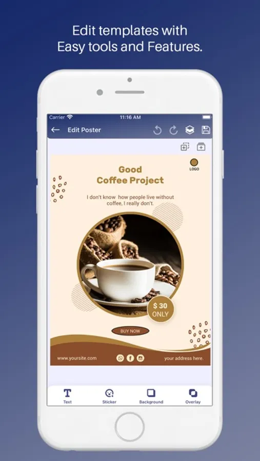 Poster Design Maker App User in necessity was created with this in mind. Poster Design Maker App also known as poster maker, poster graphics maker, poster creator, flyer maker, poster designer is best application who want to create awesome poster with less time, no need to waste money anywhere else. No more idea, skill or talent required to create poster. Anyone can use readymade template and start editing.