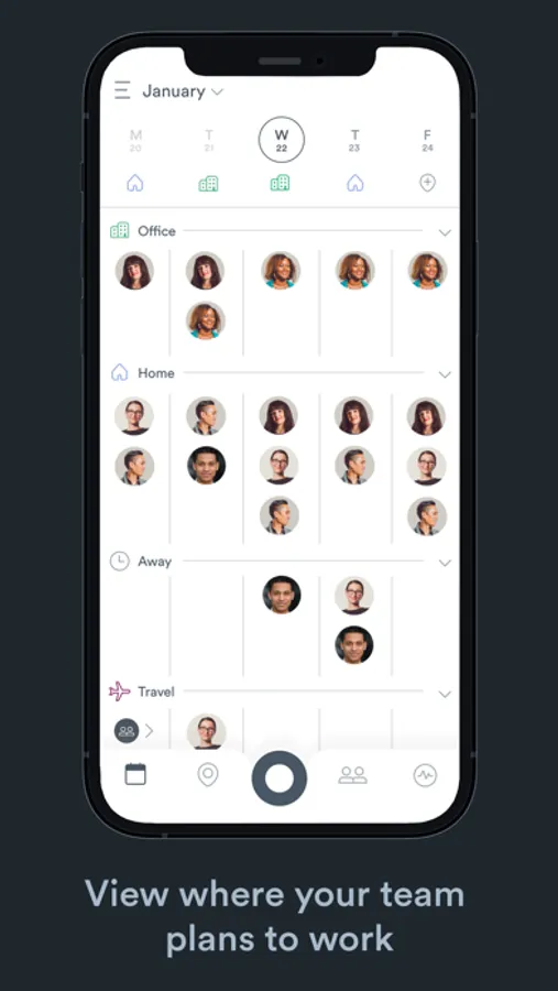 - Set and view work locations: Know when other team members are going into the office by viewing where they plan to work each day.