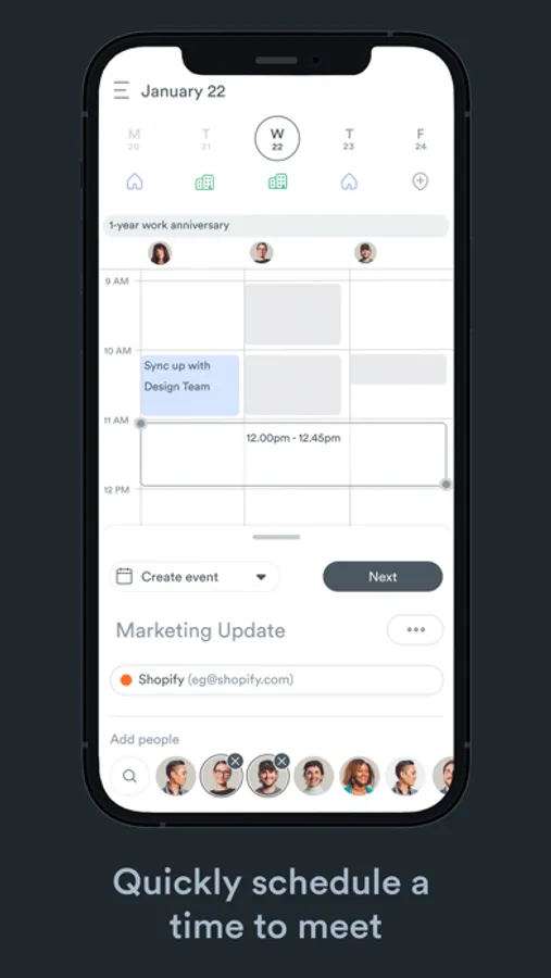 - Create meetings and events: See what your team members are up to and schedule a time to meet in just a few taps.