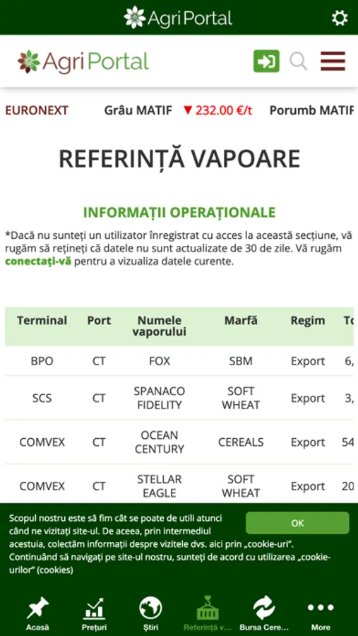 • Daily reports on ships under cargo, arriving and docking in Romanian ports on the Black Sea and Danube - the port of Constanța, Brăila, Galați, Calafat, Corabia, through which trade flows of interest can be monitored - by types of crops, exporters, ports, destinations, etc. Complete statistics on exports of all cereals and oilseeds for subscribers with Lineup access, presenting details of trade flows from previous years;