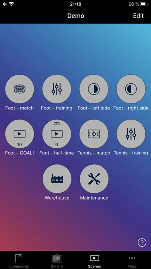 You can create different settings for every occasion. Define the exact levels for each specific event such as a match, training, maintenance, scheduling and save the settings. Now you can adapt the lighting to each event with one single tap.