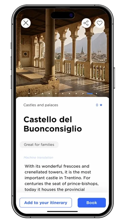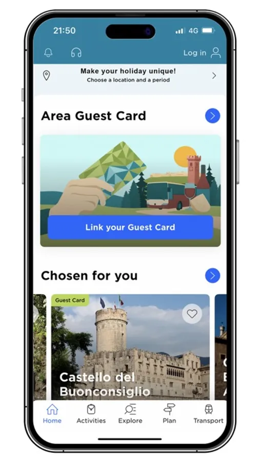 The first step? Linking your Trentino Guest Card to the app to start enjoying the many benefits it offers: free or discounted admission to castles and museums, guided tours and exclusive tastings, free use of public transport and the option to book activities and services for your holiday. To receive your card, all you need to do is book a stay in one of Trentino’s accommodation facilities.