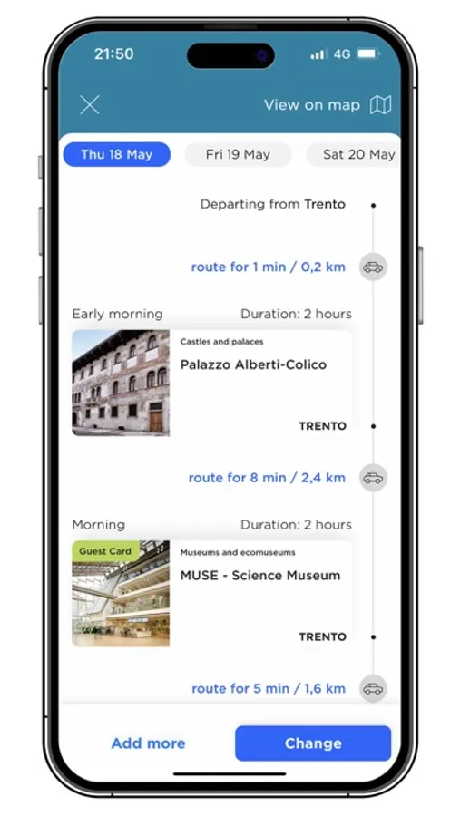And if you plan to get around by public transport? Mio Trentino will provide information on your options for getting to your destination and on the closest stops, as well as showing routes and timetables. What’s more, the app’s mobility wallet means you’ve always got easy access to your tickets and the free pass linked to your Trentino Guest Card.