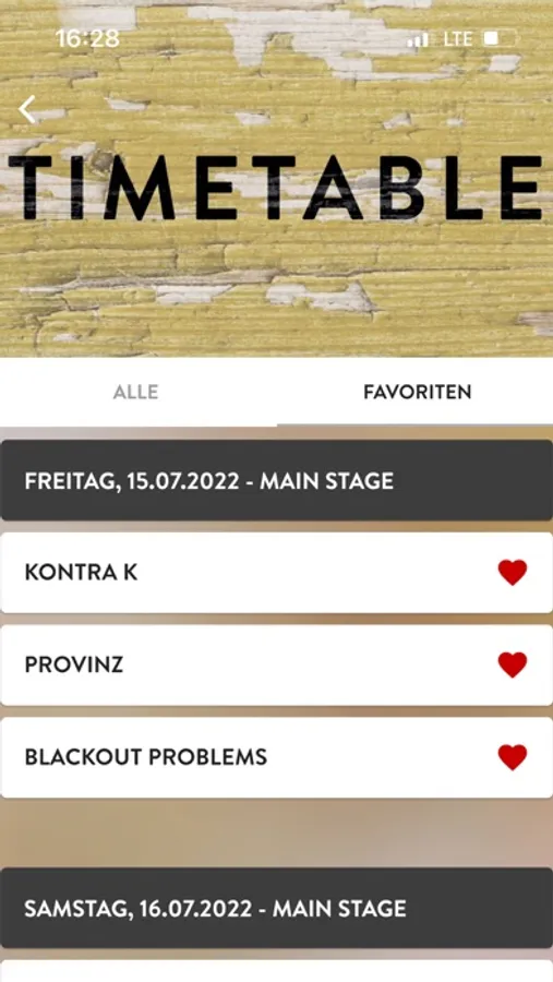 - Unter dem Reiter „Timetable“ kannst du dir mit Hilfe der Favoritenfunktion deinen eigenen Zeitplan erstellen, damit du keinen Act mehr verpasst.