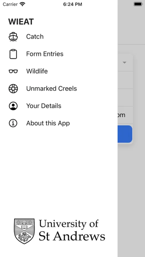 This App has been developed by the University of St Andrews to help collect data from fishers involved in the Western Isles Creel Limitation Project led by Marine Scotland. The App is designed to allow fishers to record the details of their catch, to be able to submit this data to a secure database and to generate an output in a format that they may submit to their local Fishery Office as required.