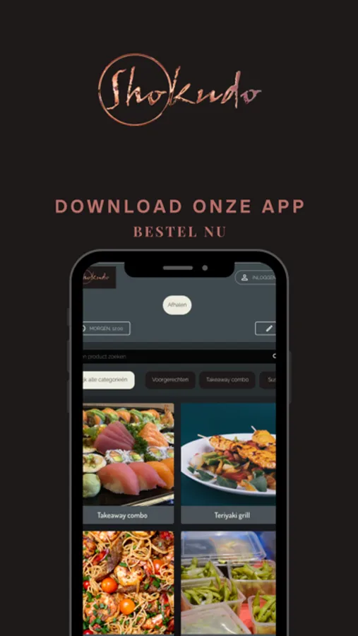 Waar u ook bent, met de app van Shokudo kan u zonder zorgen bestellen uit het uitgebreide assortiment.