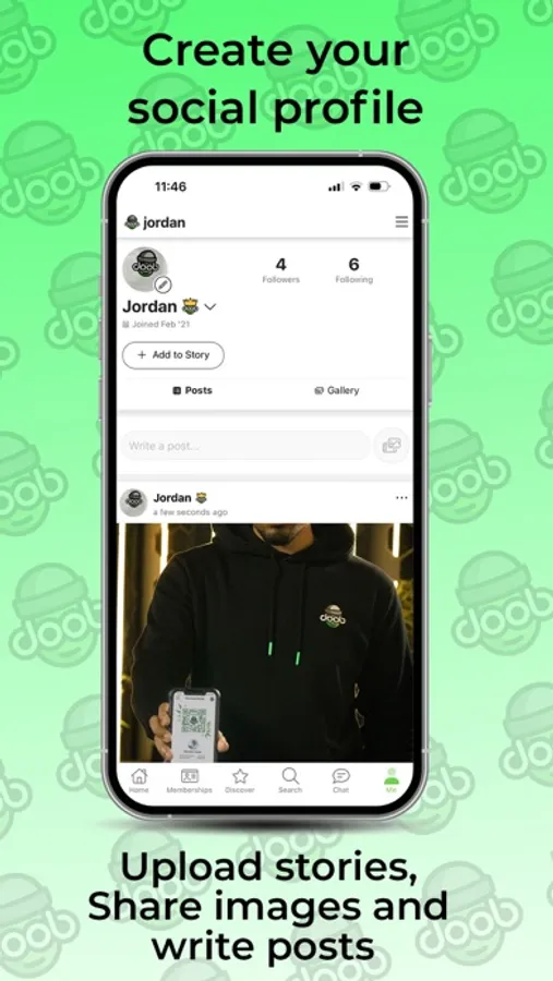 Doob Socials allows you to share posts, images and videos, and stories with other users, keep up to date with your friends and private associations.
