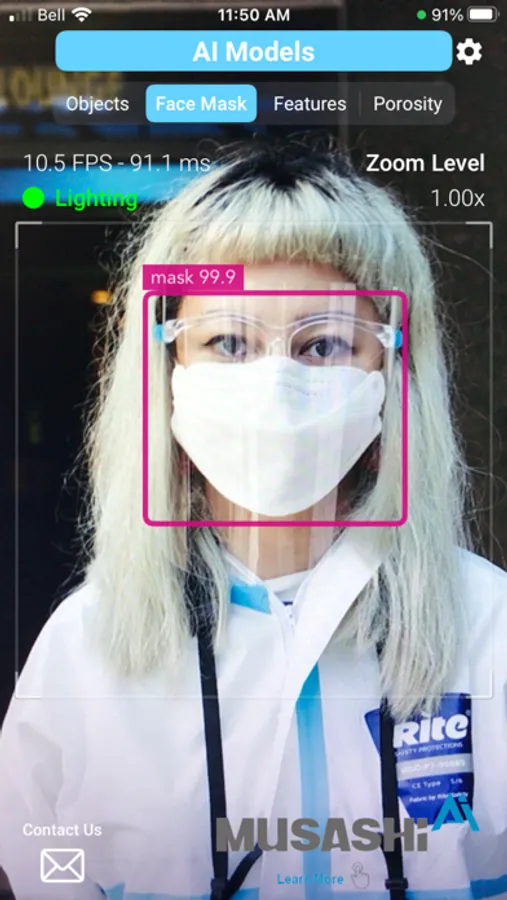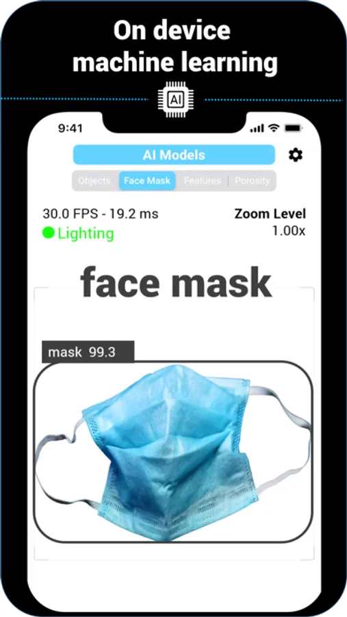 • Face Mask – A trained algorithm identifies if a person is or is not wearing a facemask. No facial data is collected or sent off the device.