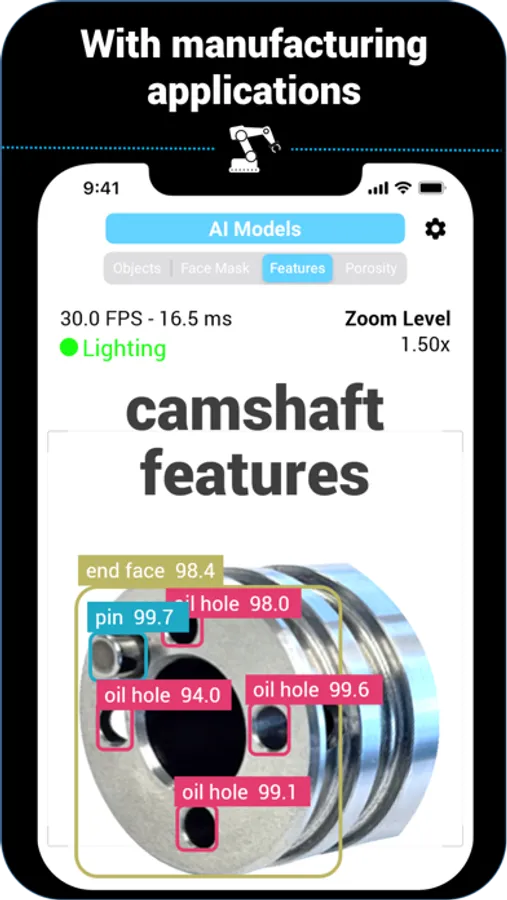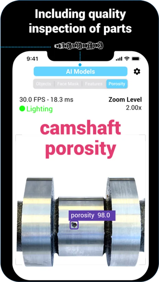 • Defects – Accurately detects porosities and dents found on machined metal parts.
