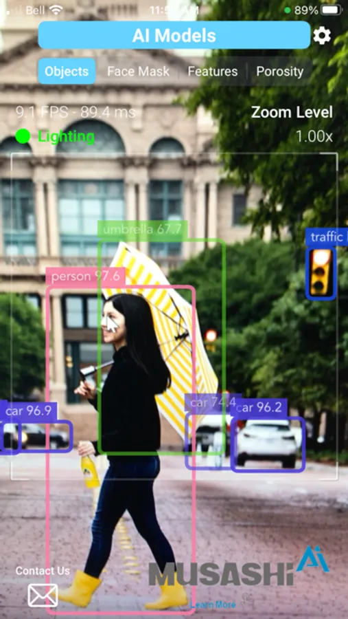 • Objects - Trained object detection algorithms in the app perform localization and classification of 80 common objects.