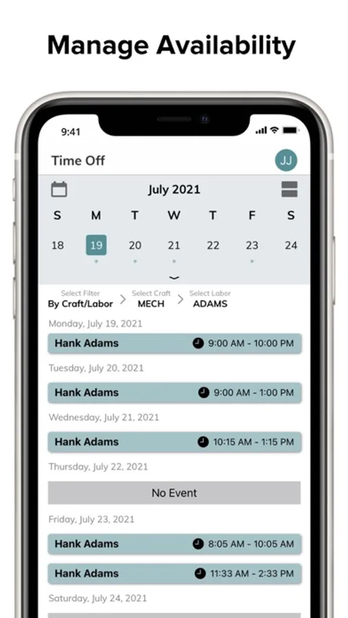 • Manage Availability: Manage time-off requests (vacation, training, etc.), assign overtime when work exceeds available hours, or schedule jobs across multiple days to avoid overtime expenses.