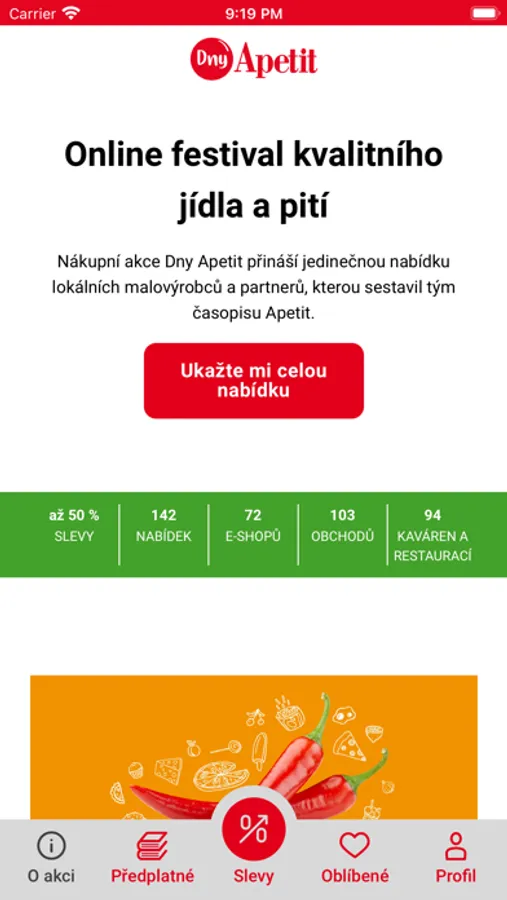 Díky aplikaci získáte výhodné nabídky a slevy do e-shopů, kamenných obchodů i restaurací či kaváren – objevte nové chutě, vybírejte delikatesy, výhodné nabídky do restaurací, domácí spotřebiče, oblíbené kuchařky edice Apetit, a ještě mnohem víc.