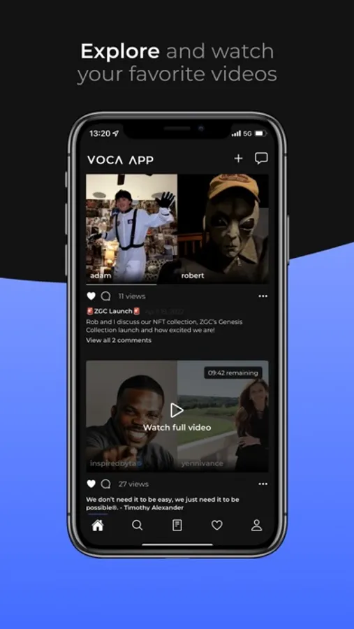 The Voca App allows users to schedule and create 1-to-1 video and audio calls (Vocas), which are conveniently recorded (or not) and uploaded for others to engage with. In addition, you can manage your own schedule and accept or deny any Voca requests your community initiates.