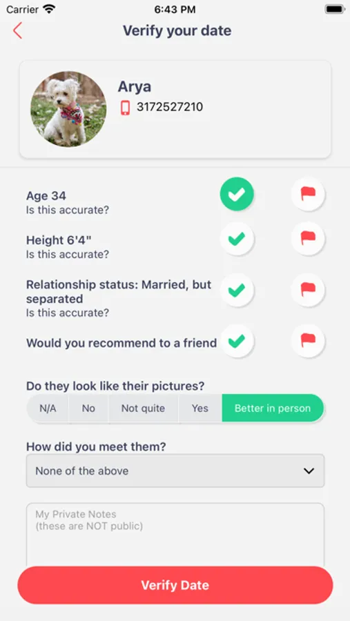 RedFlag also provides data back to you to help you improve your own dating profile. RedFlag focuses on objective questions, multiple security measures, and aggregated data to give you the most accurate information.
