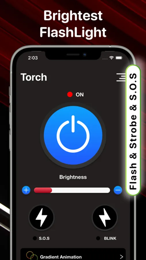• Brightest Flashlight instantly ON / OFF