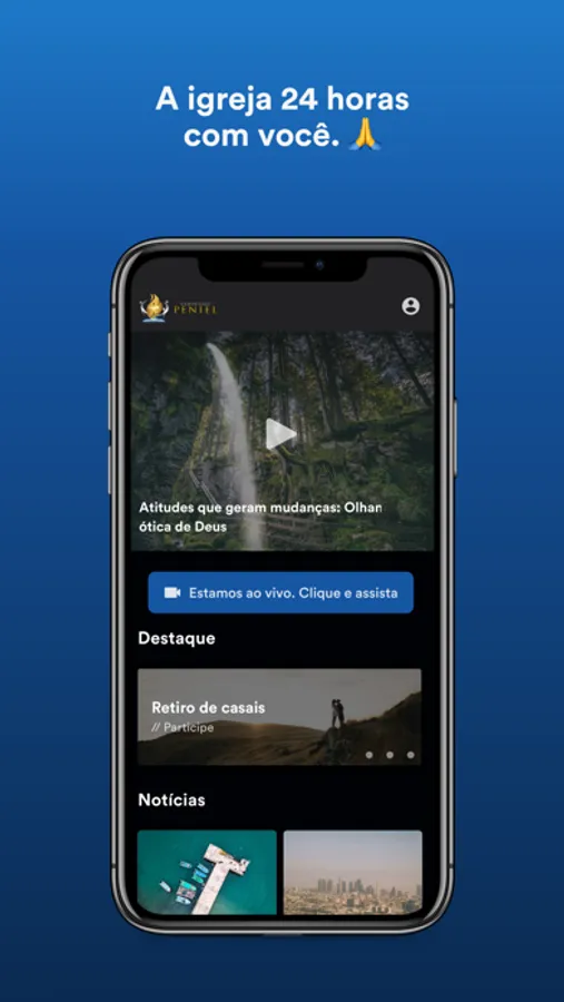 - Conecte-se com a igreja através dos grupos de interesse, receba conteúdo direcionado e obtenha sua carteirinha exclusiva.