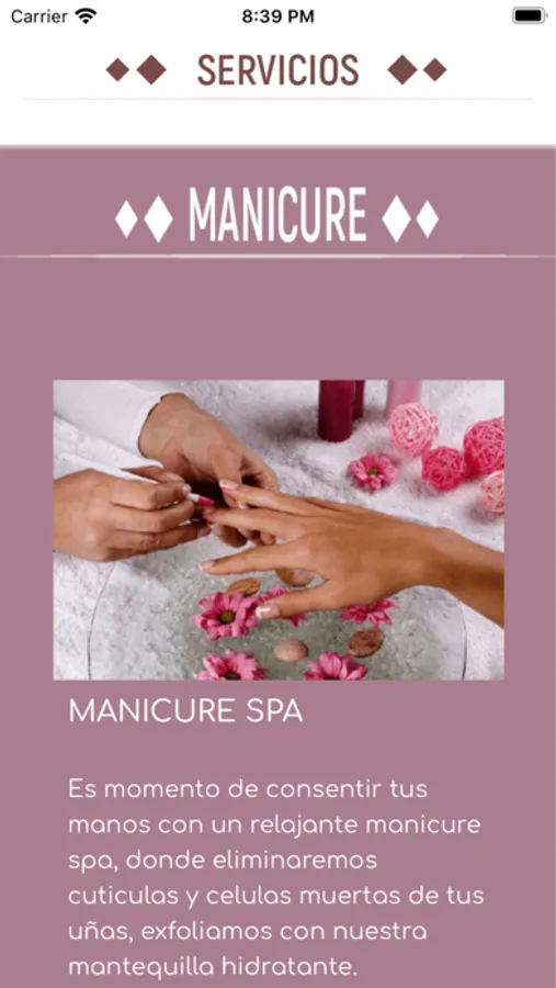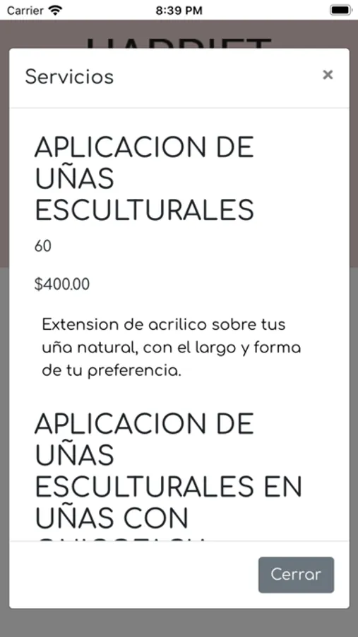Harriet nails es una aplicación para reservación de citas y compra de productos de belleza.