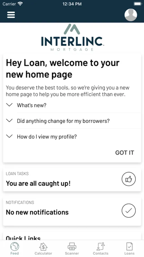 - Access contact information for your InterLinc Loan Originator and real estate agent.
