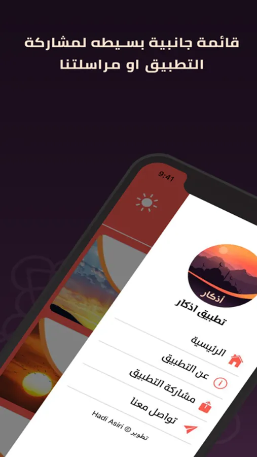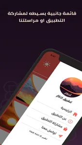 * قائمة جانبية بسيطه لمشاركة التطبيق او مراسلتنا