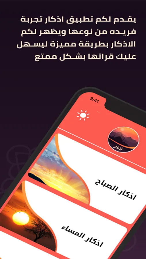 يقدم لكم تطبيق اذكار تجربة فريده من نوعها ويظهر لكم الاذكار بطريقة مميزة ليسهل عليك قراتها بشكل ممتع ومن مميزات التطبيق :