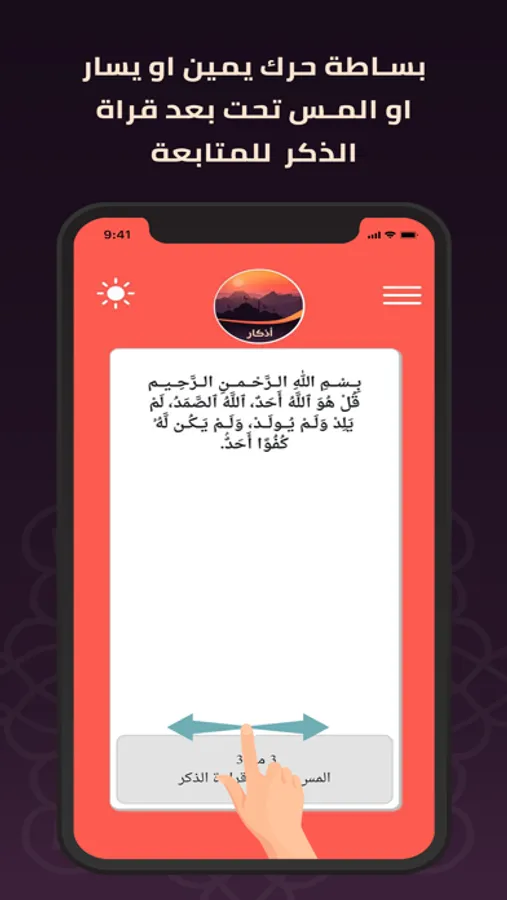 * حرك يمين او يسار او المس تحت بعد قراة الذكر للمتابعة