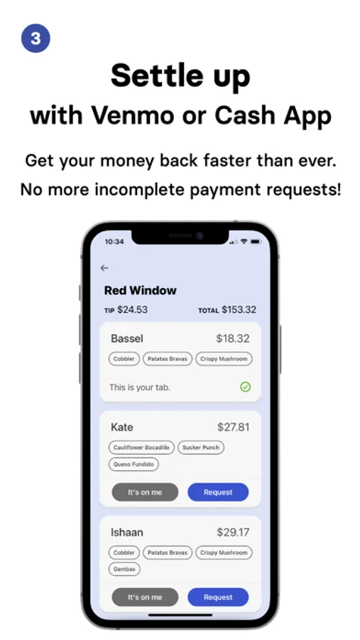 Spliti also works with Venmo and Cash App: simply select Request after assigning all the items and Spliti will send a text message to each person with a designated payment link. Spliti allows you to keep track of any receipts you scanned, or even receipts that you were added to. If you created a Spliti, you can mark payments as completed or send reminders to easily keep track of any missing payments. The days of chasing that one friend that still hasn't completed your Venmo or Cash App request are finally over!
