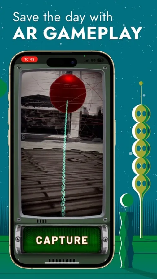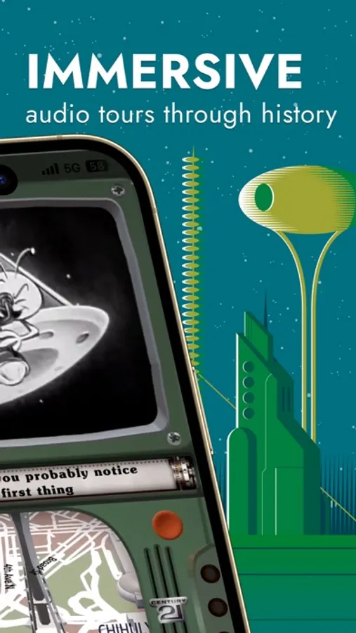 This free app transforms your phone into an official SPACE-TIME ADVENTURE TOURS Walkie-Talkie Time Machine.™ This Space Age interface uses GPS and aspects of Niantic Lightship to guide players through a tour route that will take approximately 30 to 45 minutes to experience.