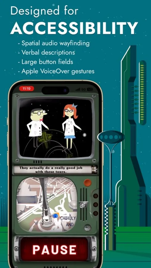 All SPACE-TIME ADVENTURE TOURS are designed for accessibility and include features for non-visual gameplay for blind and visually impaired users as well as captions and haptic feedback for deaf or hard of hearing folks.