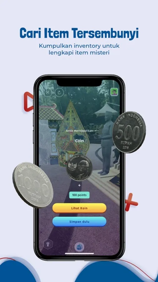 AR Rupiah adalah game mengenal Rupiah. Scan dan temukan beragam informasi menarik dan edukatif tentang Rupiah! Koleksi puluhan koin bersejarah, buka beragam peti harta karun, dan jadilah peraih skor tertinggi di daerahmu!