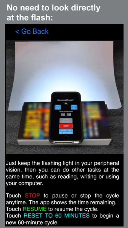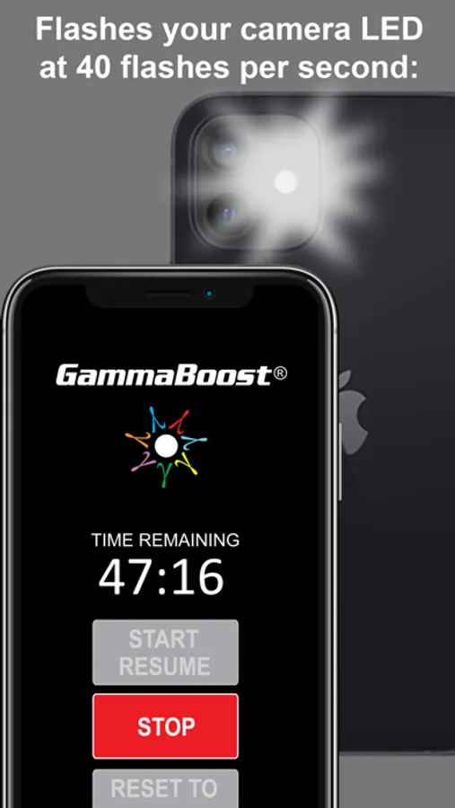 GammaBoost® lets you explore the potential anti-Alzheimer's effects of timed exposure to a 40 flashes-per-second light source, utilizing your smartphone's "flash" LED, and 40 cycles-per-second audio tone from your smartphone's speaker.