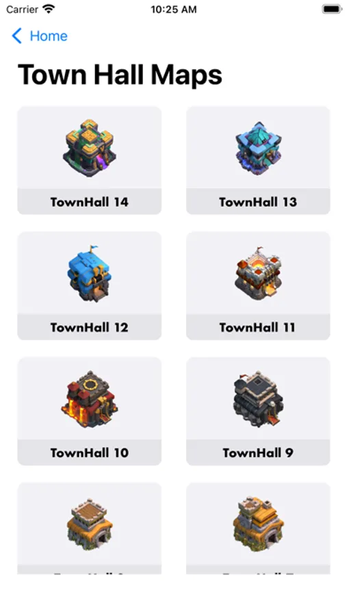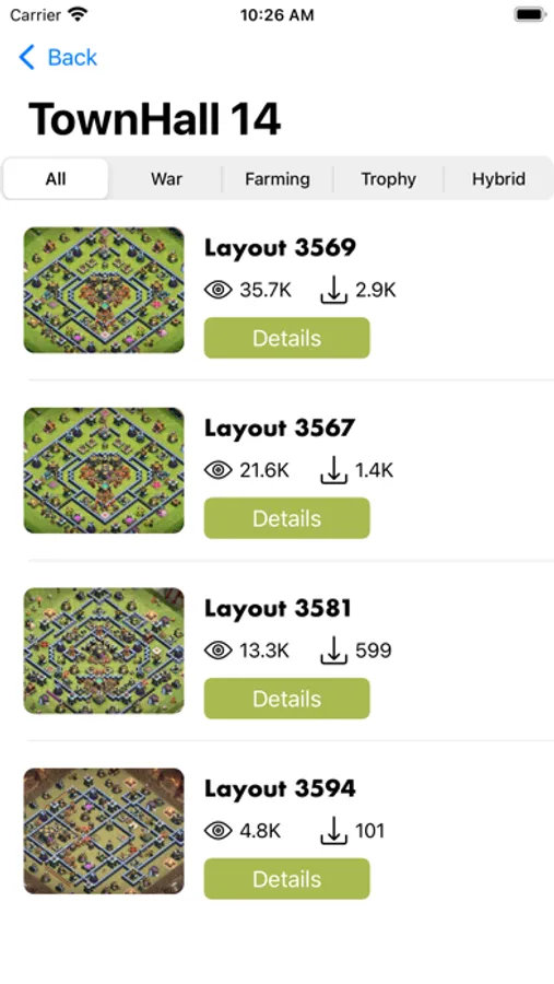 - Town hall 1 to town hall 14: war, farming, trophy, hybrid