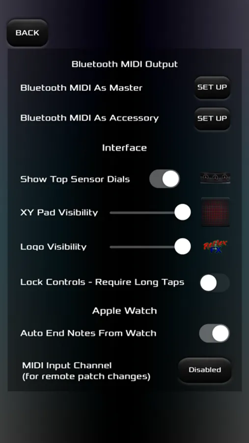 - MIDI input allowing remote control of ReFlexFX app patch switching