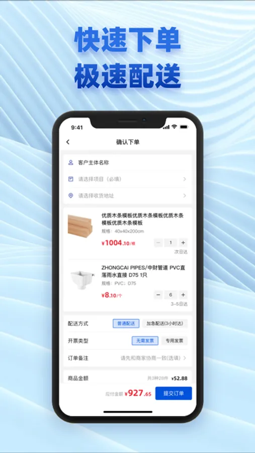 五京建材商城为客户提供六大类上万种高品质低价格的建筑辅材,并通过数据化、智能化的仓储管理和物流配送系统,将产品与服务进行统一的信息化管理,以实现客户下单到完成交付的服务体验。一部手机, 三分钟完成注册、比价、下单、付款、开票等采购全流程服务。