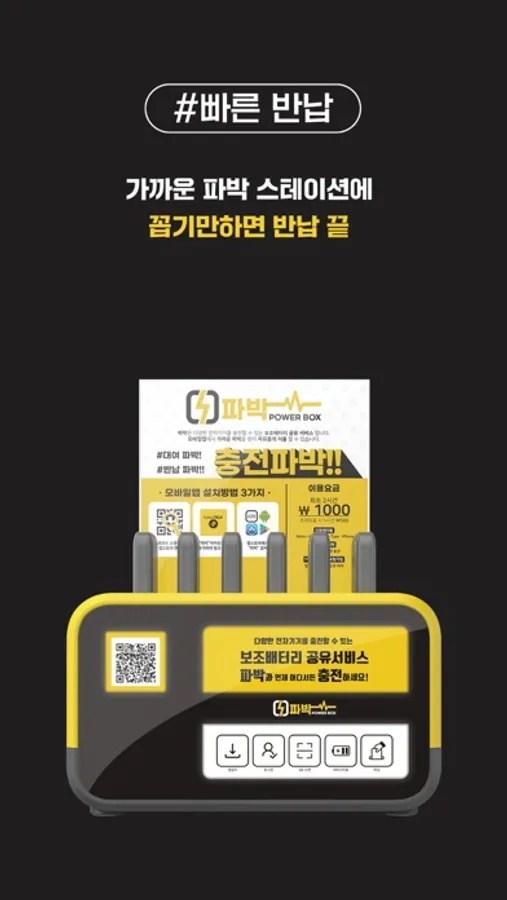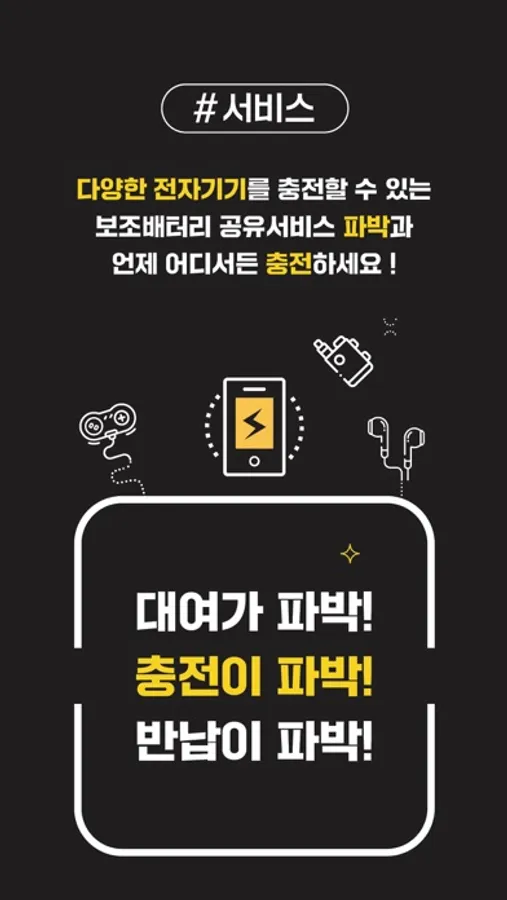 다양한 전자기기를 충전할 수 있는 보조배터리 공유 서비스 "파박"과 언제 어디서나 충전하세요!