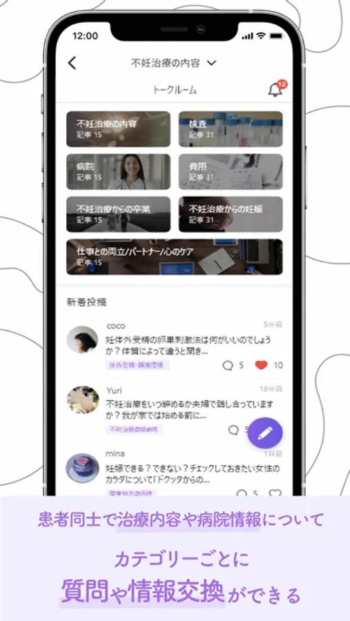ギモンだらけの不妊治療。患者同士で治療方法や医療機関等の情報交換や質問をシェアしていく場のトークルーム。もう1人で抱え込むのはやめて仲間に共有していきましょう。