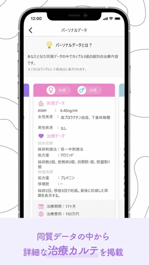 ※同質データ…上記から、年齢、AMH、保有疾患(男女)等の情報から同質と定義された人の治療の同質データ