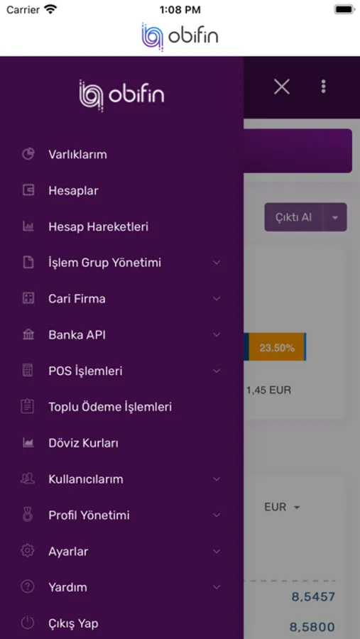 Obifin sayesinde tüm TL, döviz ve altın vb. hesaplarınızı görüntüleyebilirsiniz.