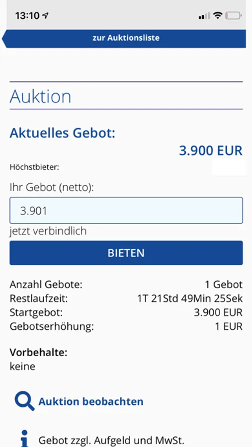 Verpassen Sie keine Auktionen mehr! Die App erinnert Sie an ablaufende Auktion. Erhalten Sie Benachrichtigungen, wenn andere Bieter Sie überbieten.