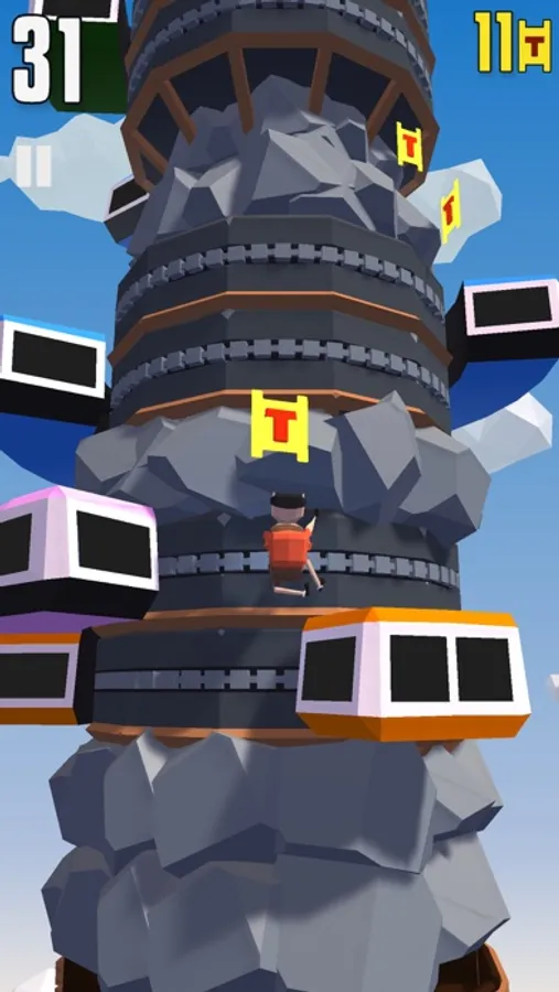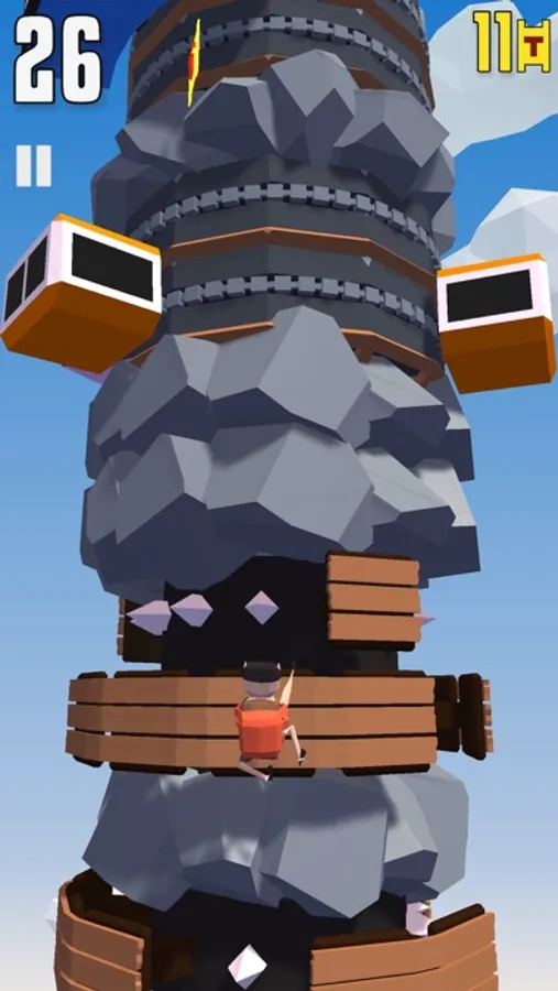 Spin Tower is an endless arcade climbing game where you climb up a rocky mountain tower.