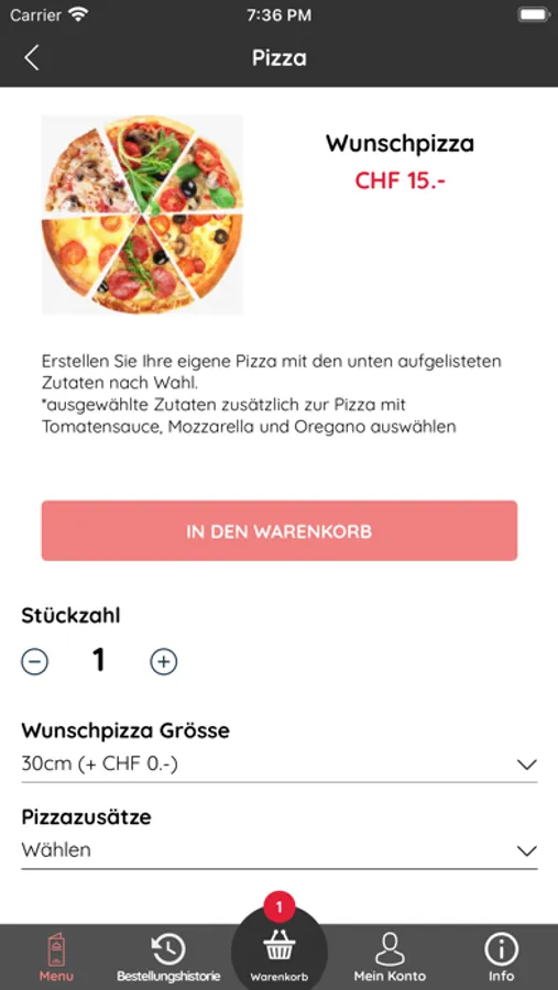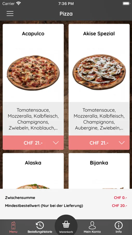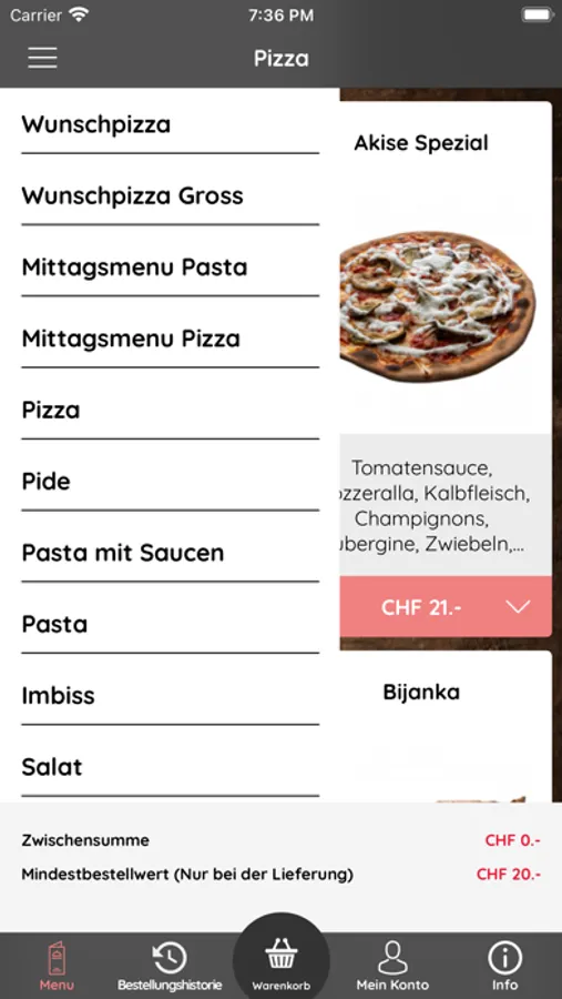 Bestellen Sie einfach türkische Gerichte und Pizzasorten.