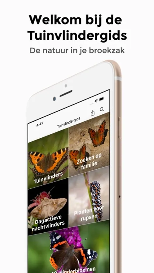Een interactieve app met de meest voorkomende vlinders van je tuin. De selectie van tuinvlinders is gedaan door de Vlinderstichting. De kans op een juiste herkenning wordt hierdoor vergroot.