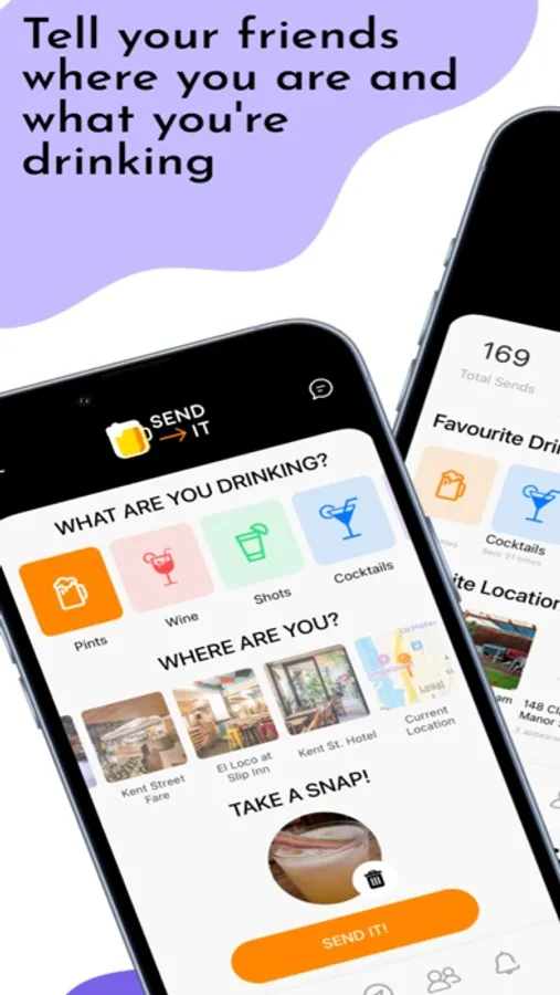 SEND IT is the app that lets you tell your friends when and where you’re having a drink.
